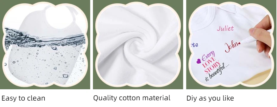 The wooden baby shower game decor is approx. 5.12 x 7.87 x 0.2 inches/ 13 x 20 x 0.5 cm, designed with a holder on the back to make it stand on the table stably; The mini baby bibs are approx. 7.09 x 7.09 inches/ 18 x 18 cm, and the white baby bodysuits feature with 3 sizes, suitable for 0-3 months, 3-6 months, 6-9 months of baby use; The wooden clips are 1.38 inches/ 3.5cm.