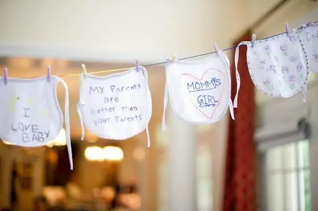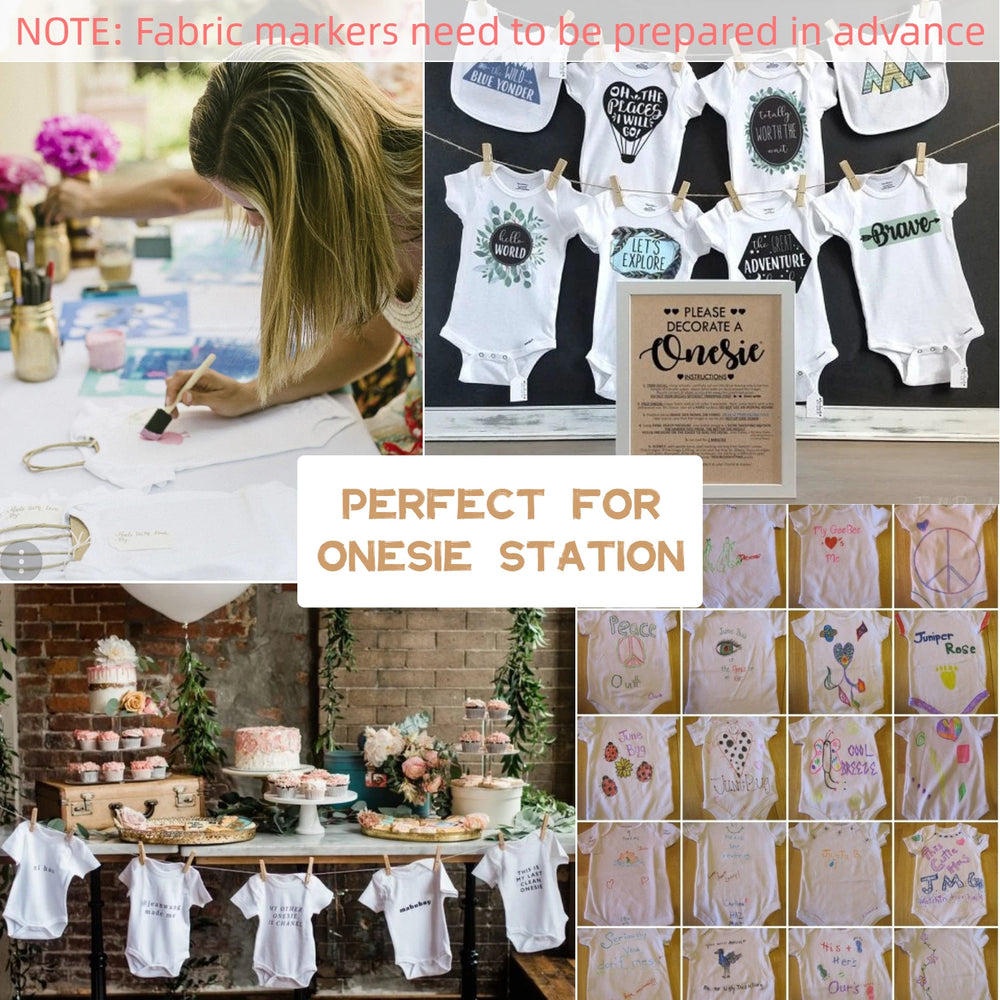 Package includes 1 piece of wooden baby shower games sign, 15 pieces of white bibs, 9 pieces of blank baby bodysuits with 3 sizes, 2 hemp ropes and 40 pieces of wooden clips, 67 pieces in total, sufficient quantity and nice combination to satisfy your baby shower.
